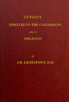 St. Paul’s Epistles to Colossians and Philemon-Lightfoot